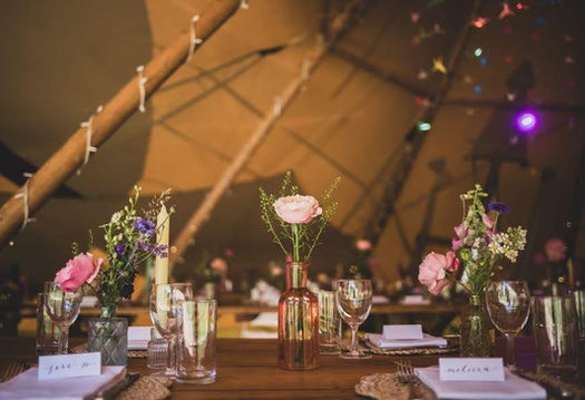 The photos show everything from long wooden tables dressed with wildflowers to unique glassware, handwritten signs, disco balls, and DIY favours.